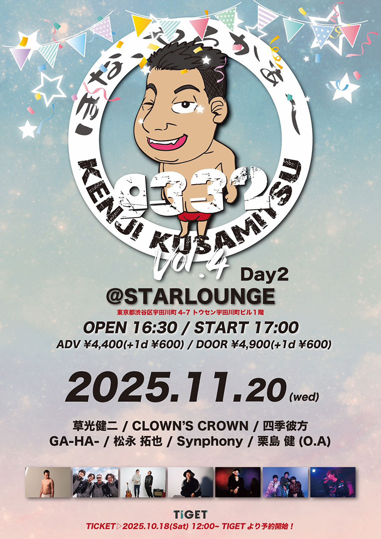 出演:草光健ニ / CLOWN'S CROWN / 四季彼方 / GA-HA- / 松永拓也 / Symphony / 栗島健(O.A)